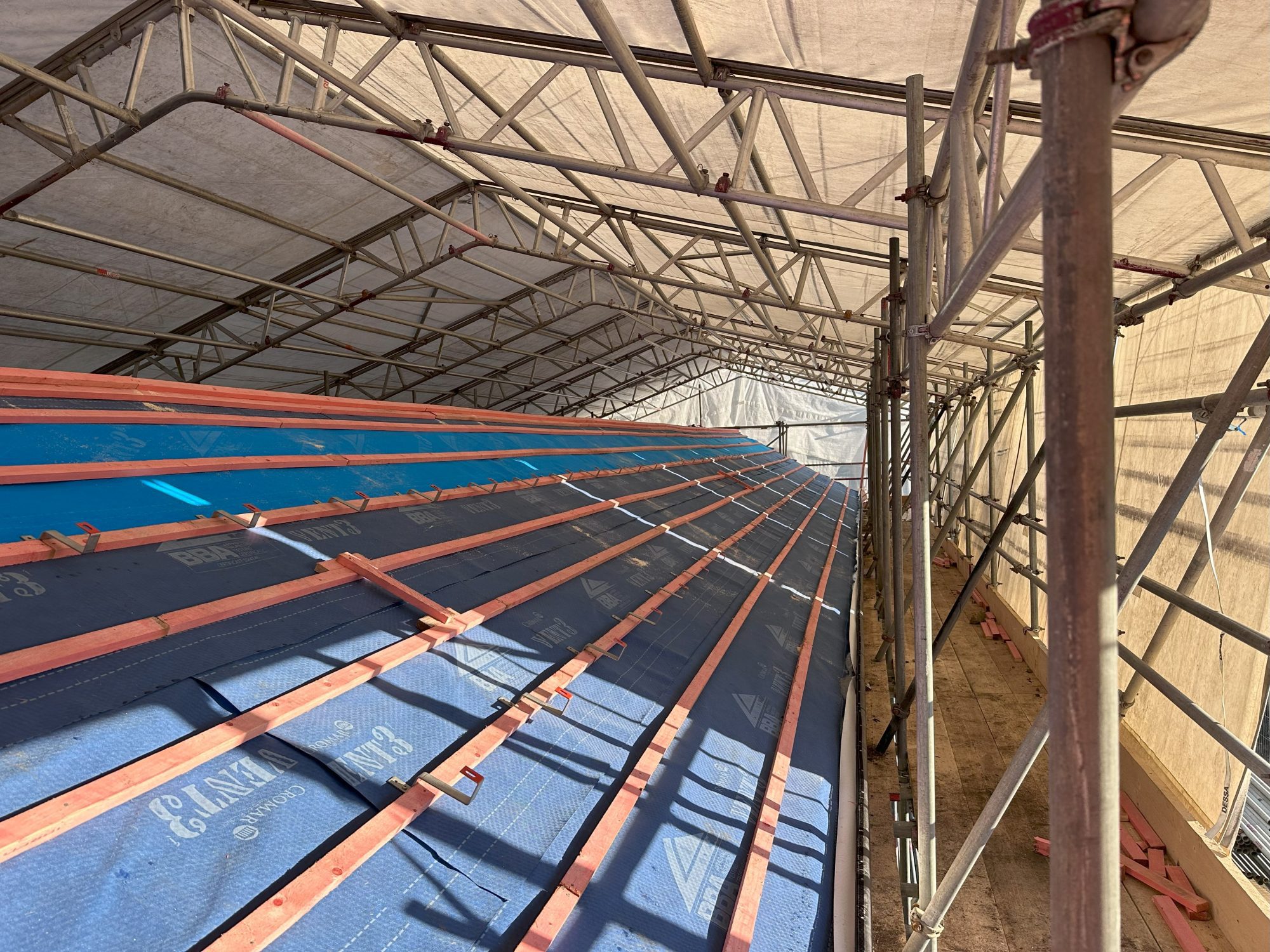 The roof hooks being installed prior to the roof covering being installed.