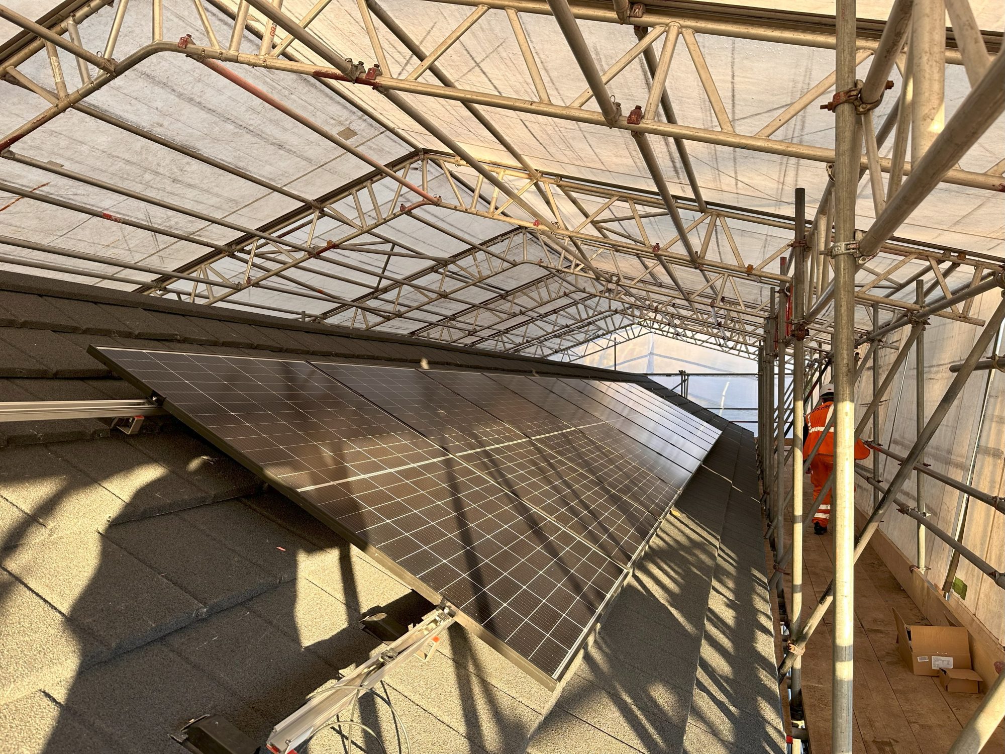 The solar modules secured in place following the roof covering install.