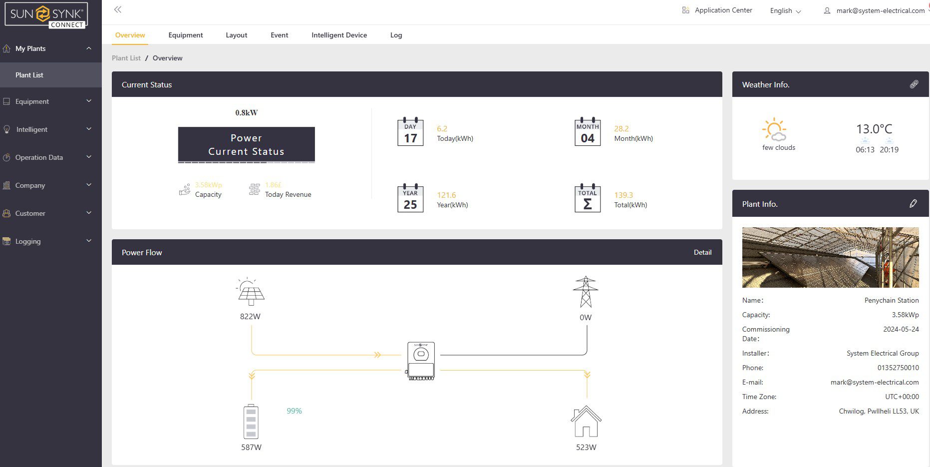 The Sunsynk Portal providing the customer with a remote live view and control of the system. Enabling the system owner to check on operation, adjust settings or browse through a comprehensive collection of data and reports for performance analysis, all from the comfort of their office.