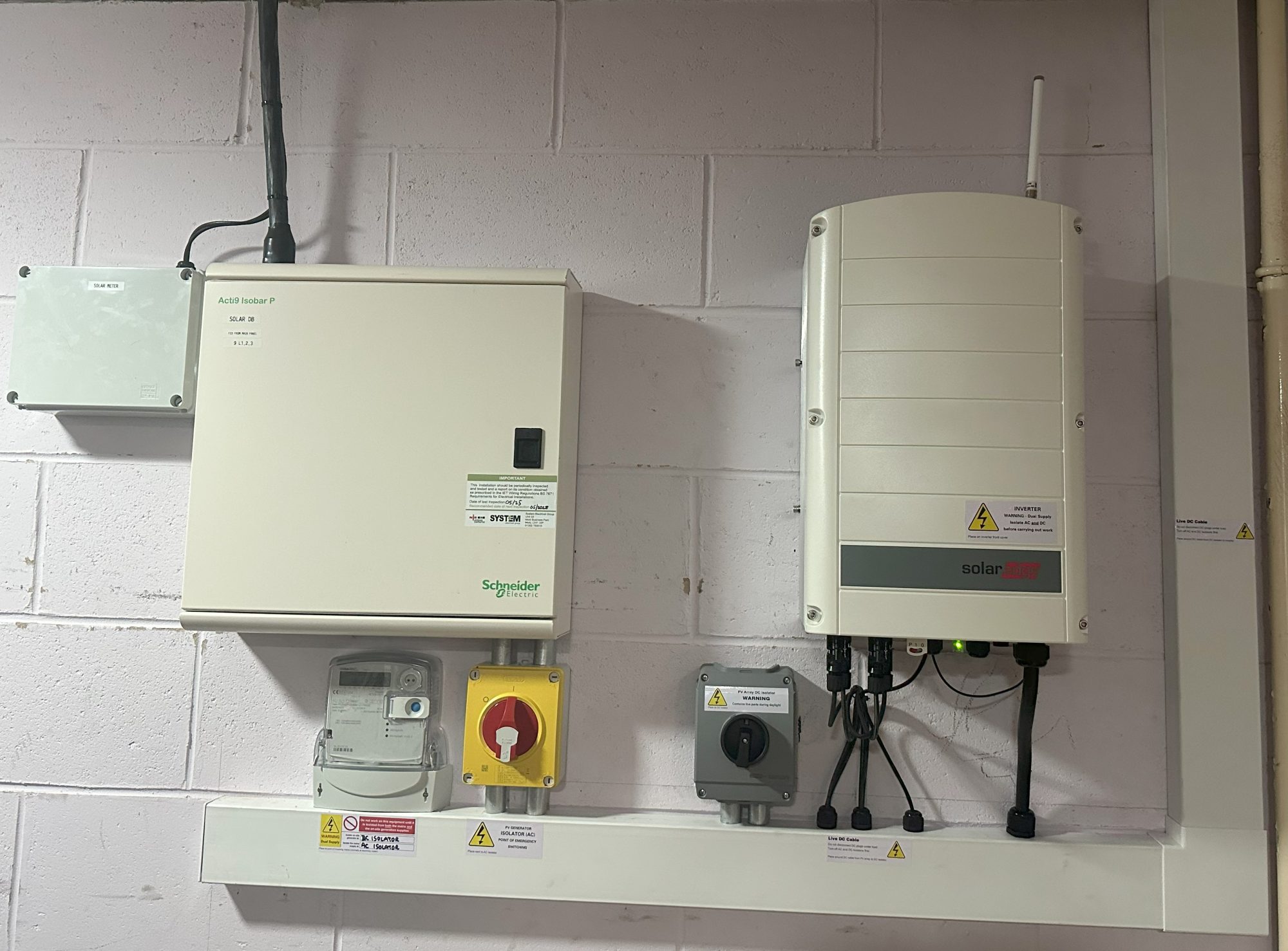 Inverter, isolators and power meter installed.